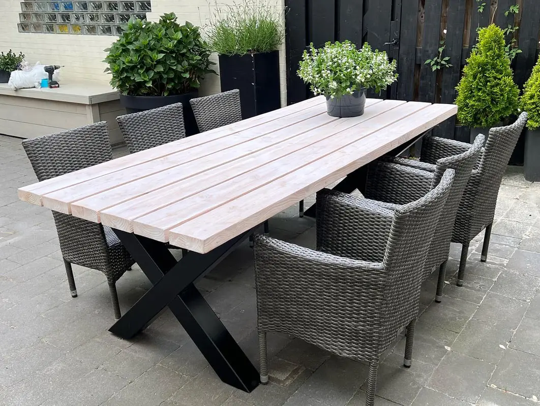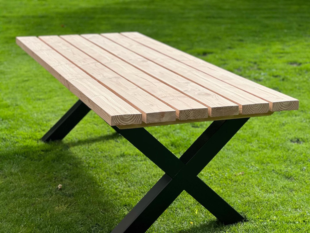 Douglas tafel met stalen onderstel