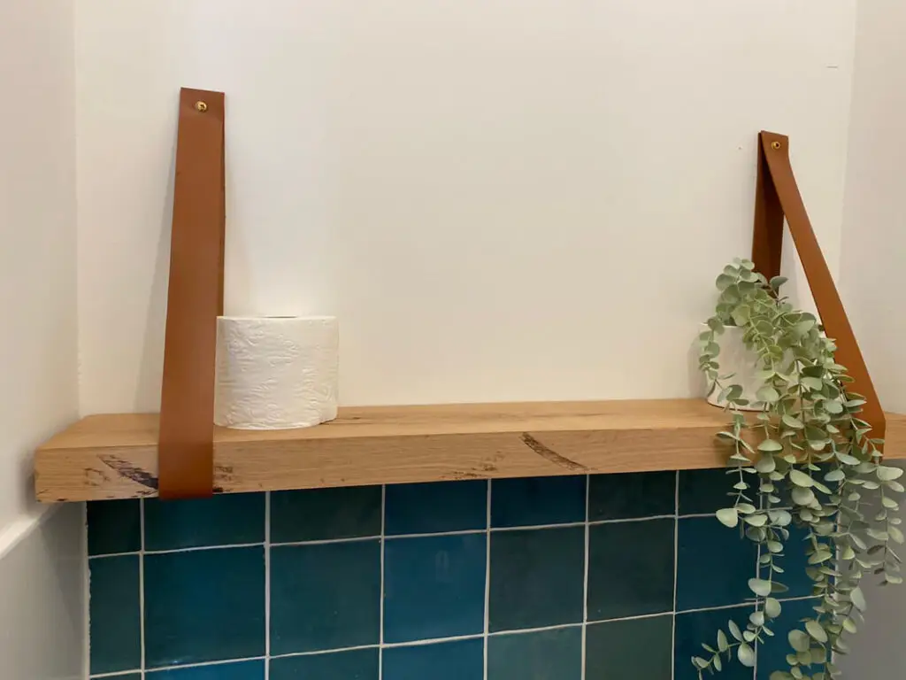 Eiken wandplank 40mm met leren riem