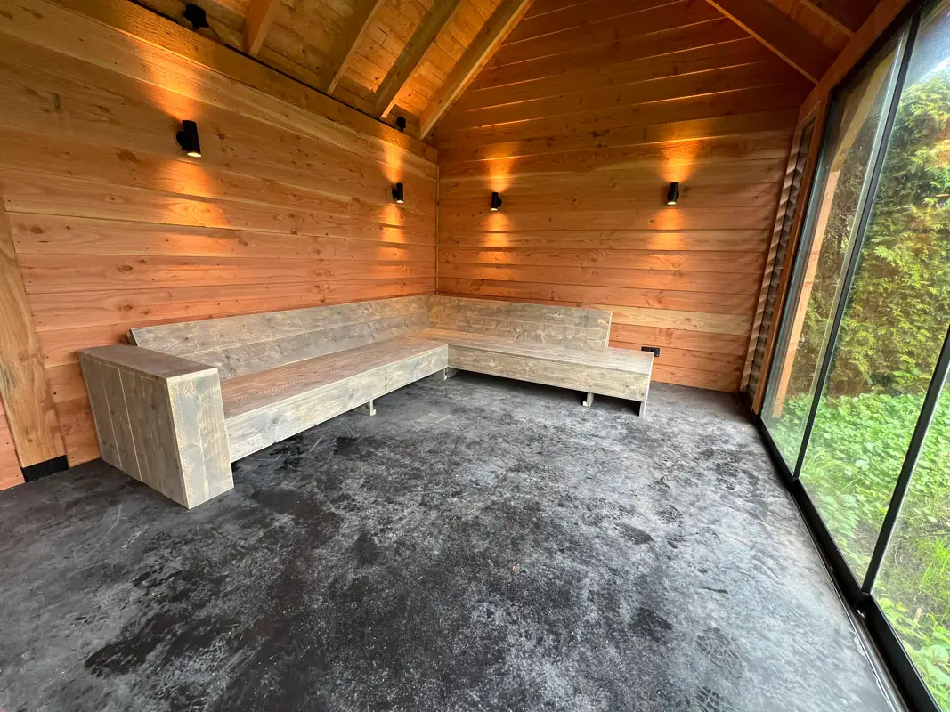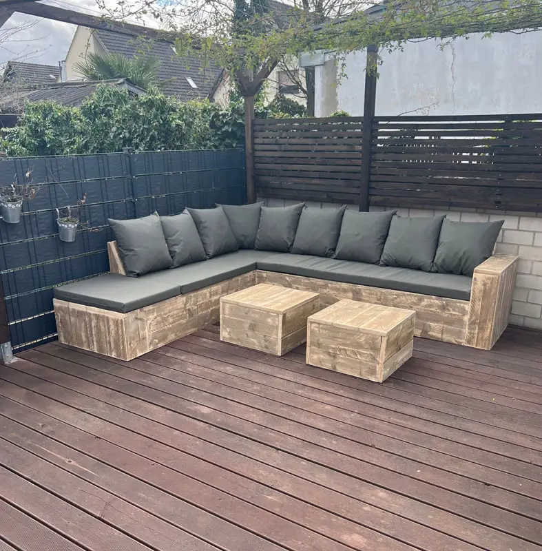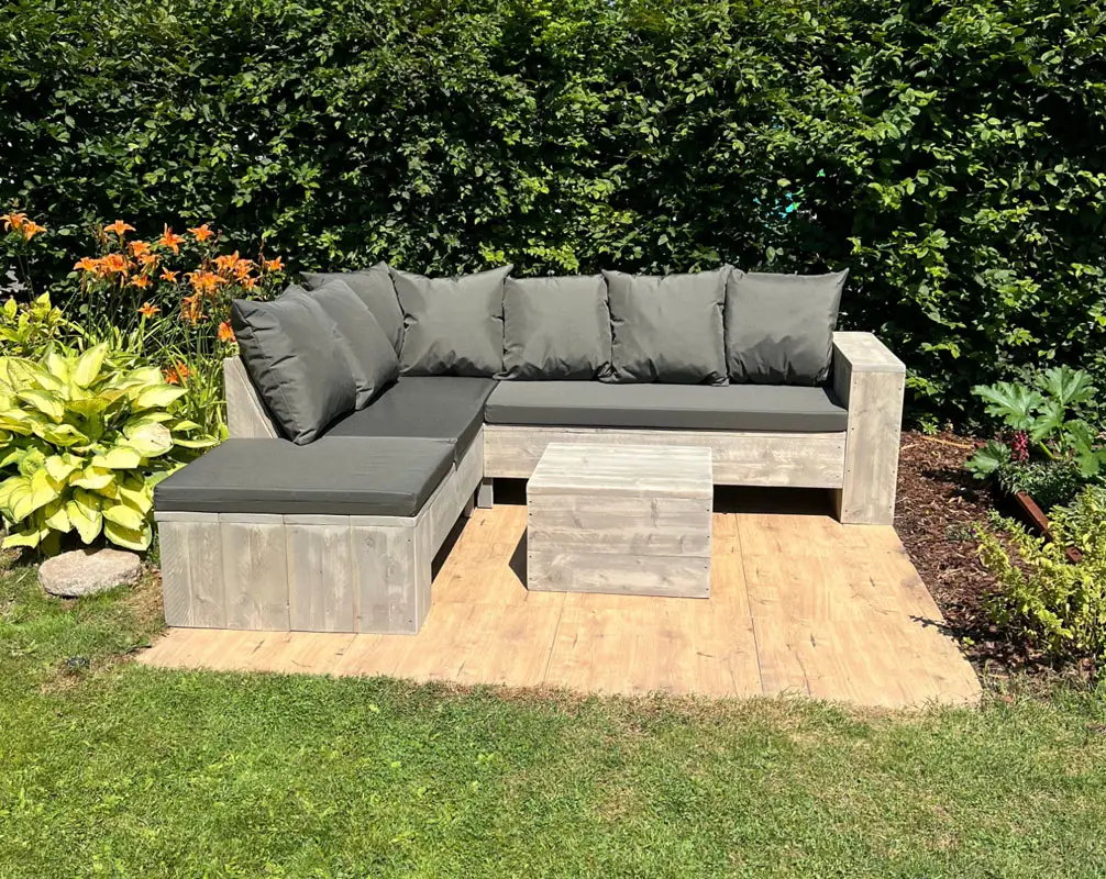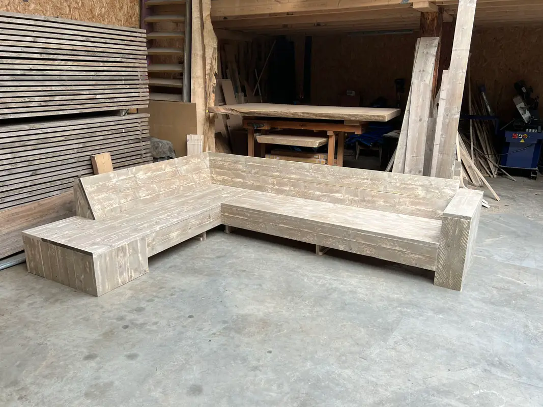 Steigerhouten hoekbank met chaisse longue aantal