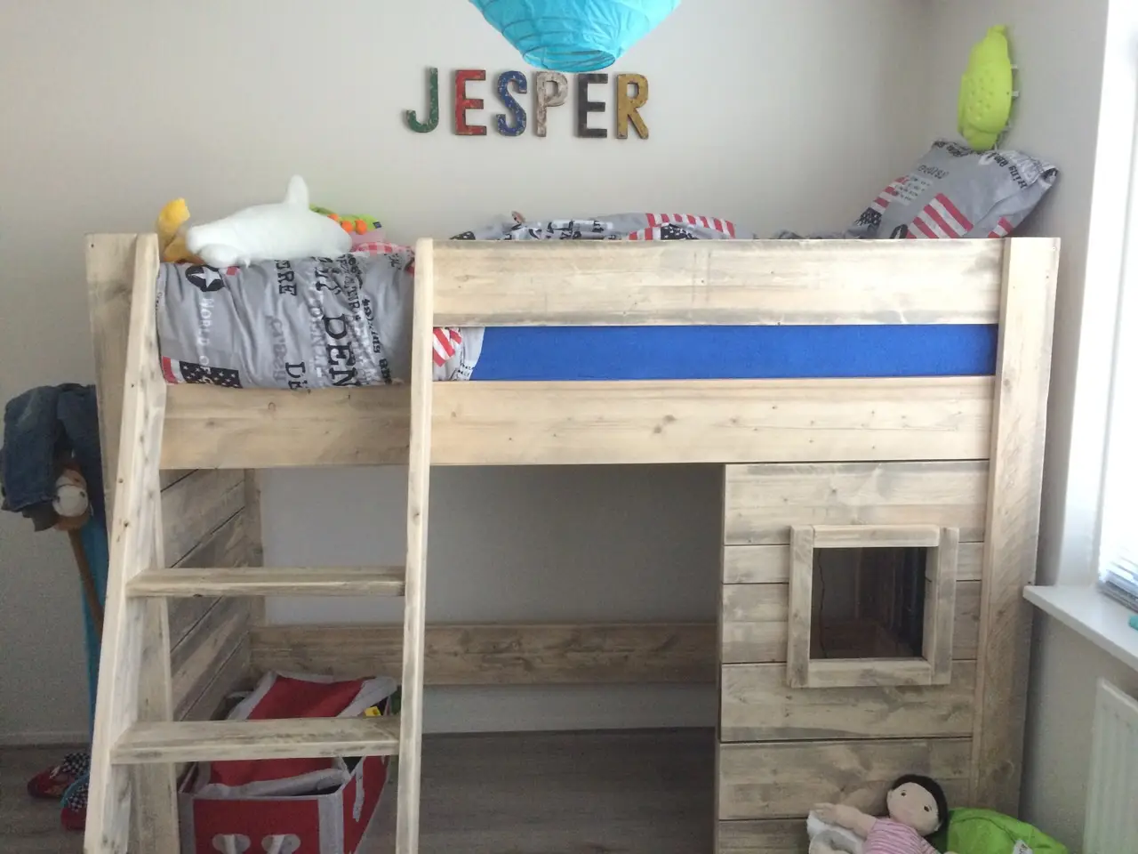 Steigerhouten hoogslaper met speelhut